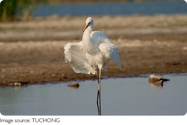 Low-angle shooting means placing the camera closer to the ground, giving a fresh and striking perspective. Egrets often appear near coastal areas, wetlands, rivers, lakes, and rice paddies. Shooting from a lower angle allows us to highlight their long, elegant bodies while gently blurring cluttered foreground elements, letting the bird become the star of the frame.